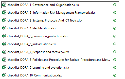This collection of 10 checklists in Excel format can be used by financial entities to document compliance with Chapter II (ITC Risk Management) of the Digital Operational Resilience Act (EU Regulation 2022/2554) (‘DORA’).