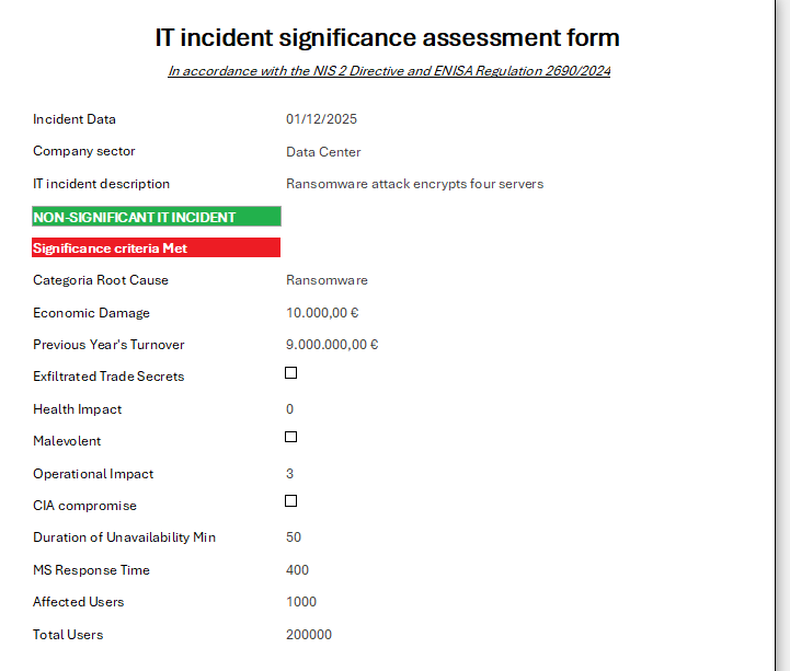 It is software that allows you to quickly, documentedly and compliantly determine whether a cyber incident is to be considered significant under NIS2 regulations.